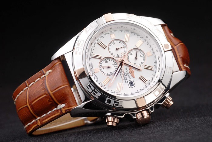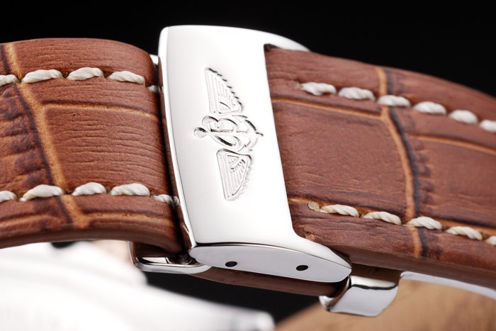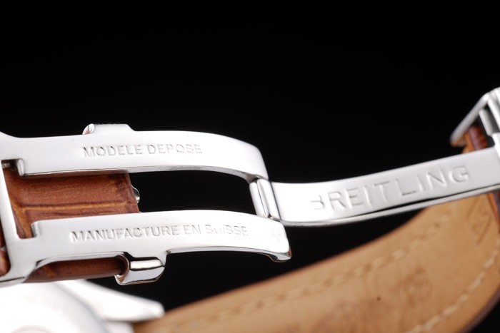 Bracelet en acier inoxydable: Brown bracelet en cuir de crocodile avec brevet coutures blanches et de la chaleur en relief gravures Breitling et en acier inoxydable gravé replient déployante avec logo Breitling sur top