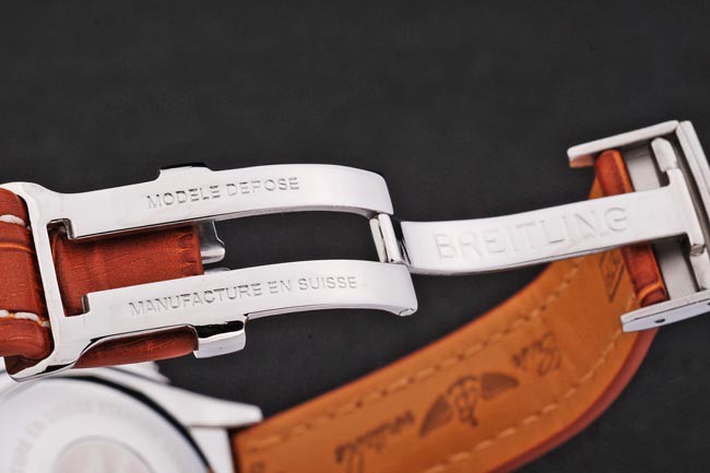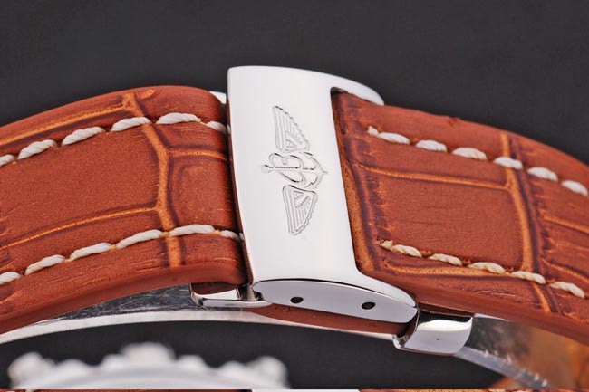 Bracelet inoxydable: Russet cuir rouge de haute qualité dans un crocodile motif, avec de lourdes coton blanc coutures. bande intérieure est en relief avec le nom et le logo Breitling, et a une fermeture de boucle en acier.