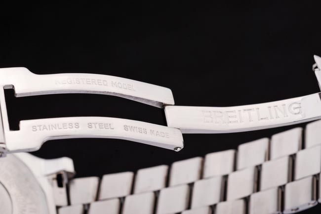 steel boucle de fermeture en relief avec le nom Breitling et logo.