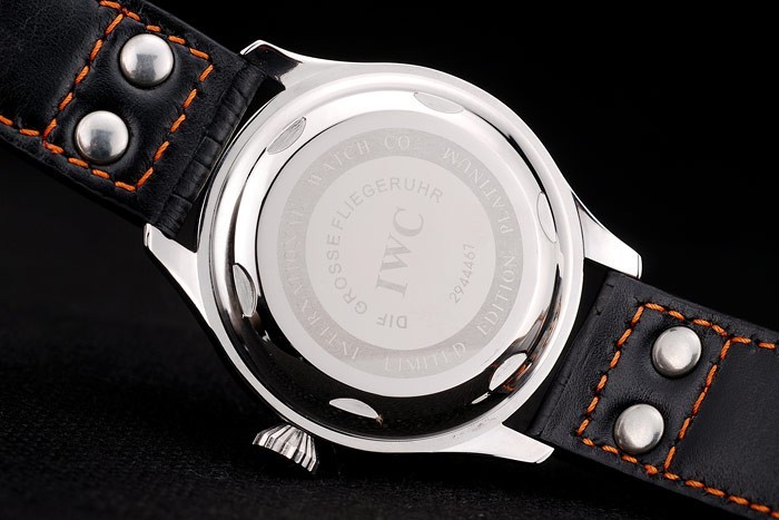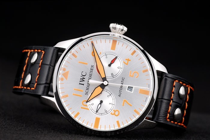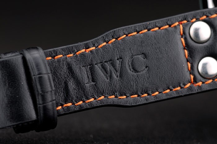 Bracelet en acier inoxydable brossé: IWC en relief crocodile noir bracelet en cuir de chaleur avec fil de couture orange et gravé en acier inoxydable brossé crochet IWC clasp