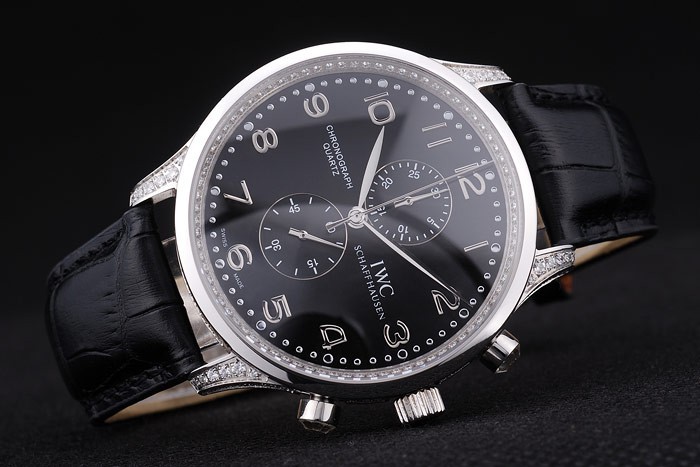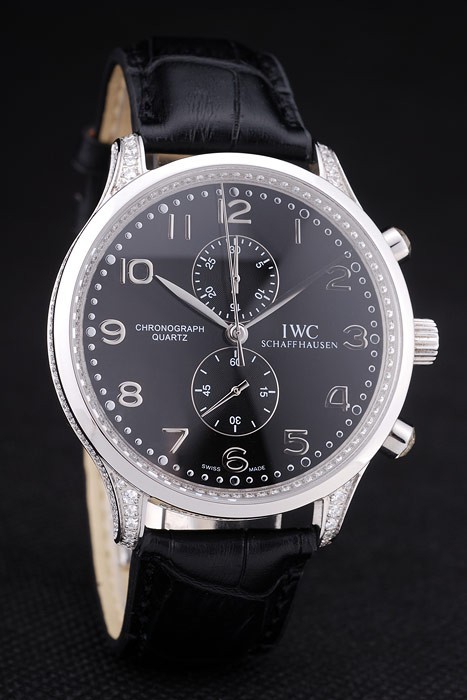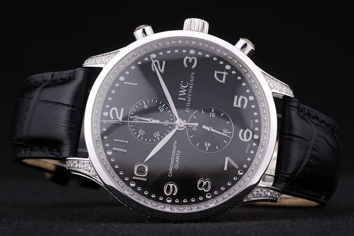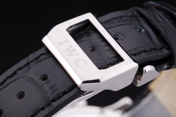 Bracelet en acier inoxydable: IWC Schaffhausen en relief crocodile noir bracelet en cuir de chaleur avec IWC inscrit en acier inoxydable crochet-boucle clasp