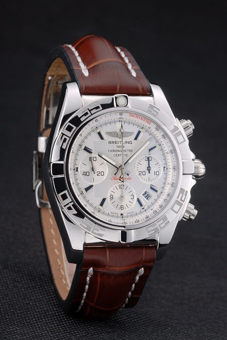 1 avis pour Swiss made certifié en acier inoxydable Lunette Brown Croco Cuir Bracelet Cadran Blanc 80285